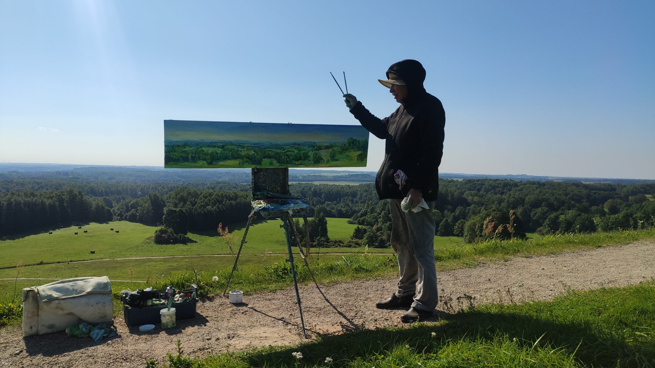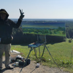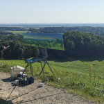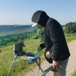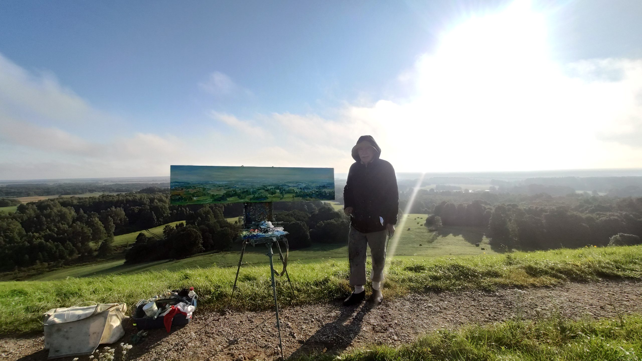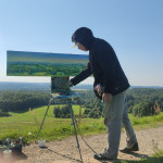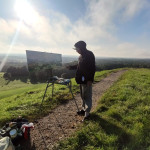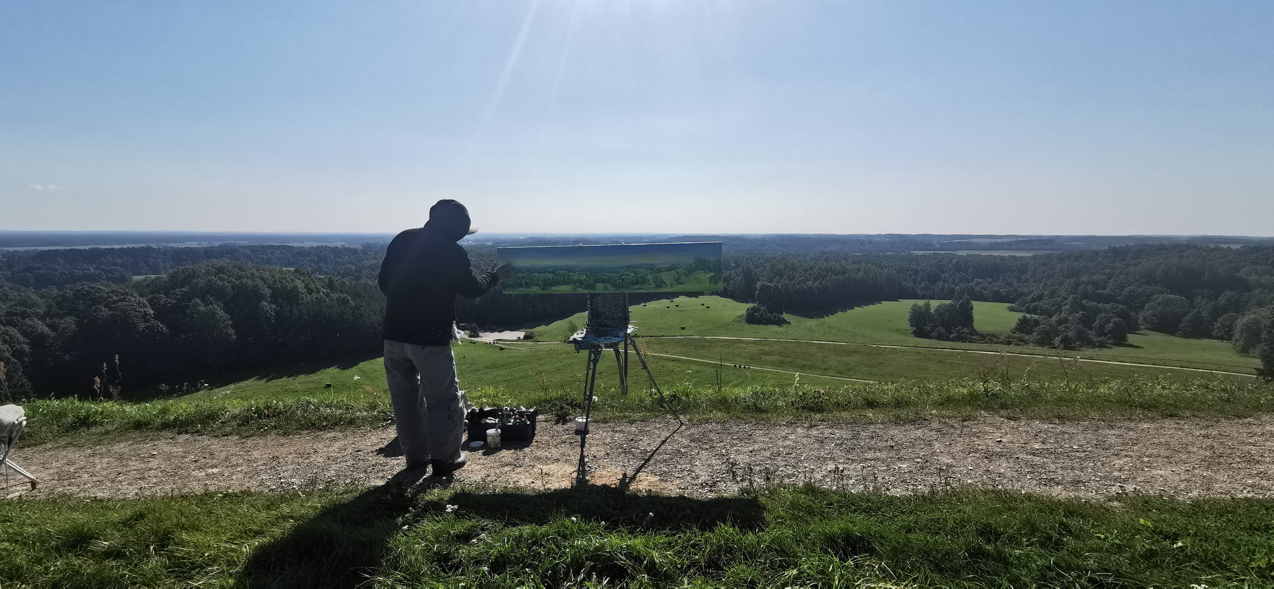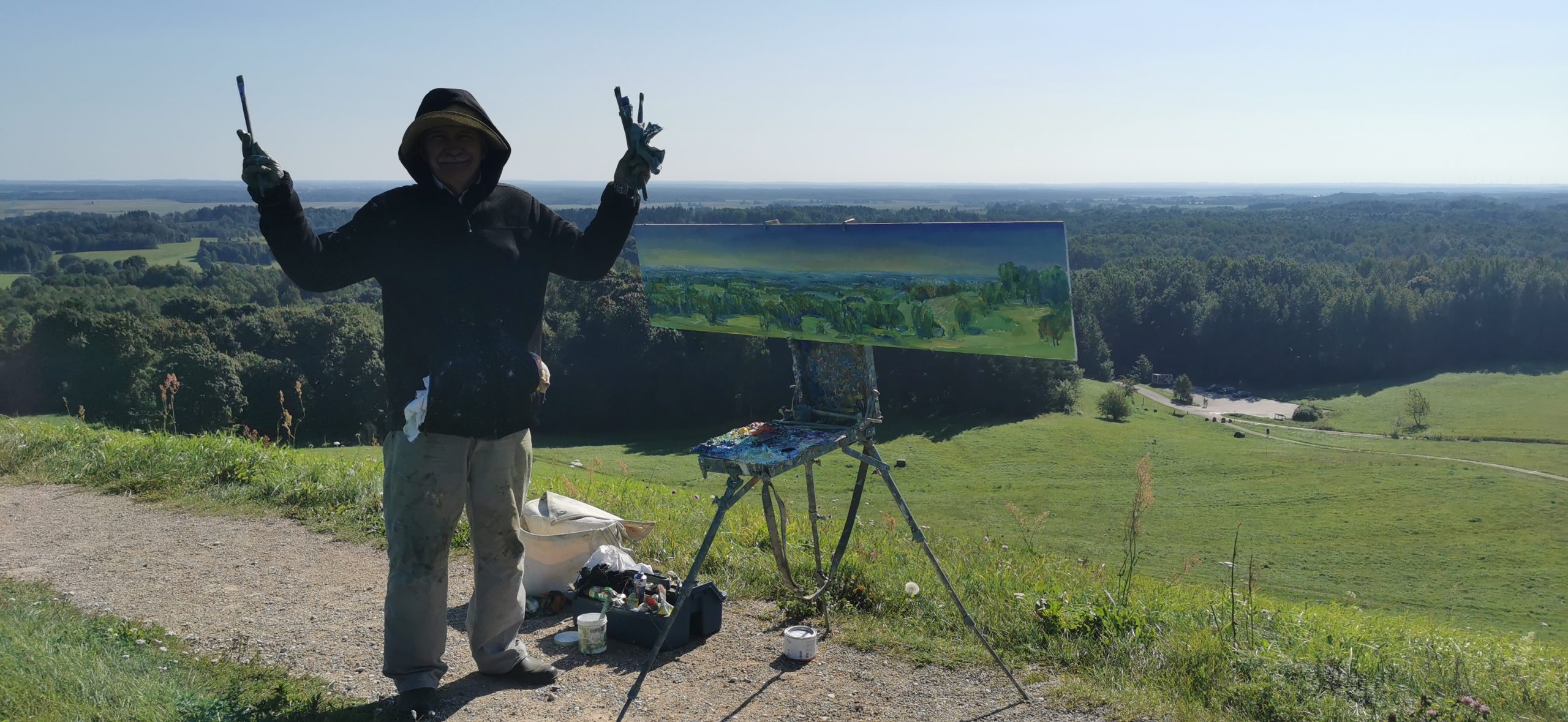 Tapybos pleneras Žemaitijoje ant Šatrijos kalno 2025 09 1-2 Saulei nuostabiai auštant virš Žemaitijos visa žemė apšviečiama sidabriniais Saulės spinduliais. Pabunda gamta ir pasaulis. Tuo metu tapiau Sidabrinės Saukės patėkimo kerintį vaizdą kada žemė atsiskiria nuo dangaus. Nuo kalno viršaus atsiveria nuostabus Žemaičių žemės grožis. Tapiau auštančios dienos ankstyvą rytą ant Šatrijos kalno šaltą ir vėjuotą sidabrinės Saulės užtekėjimą. Nutapiau didelė dviejų dalių gamtovaizdžio panoramą.