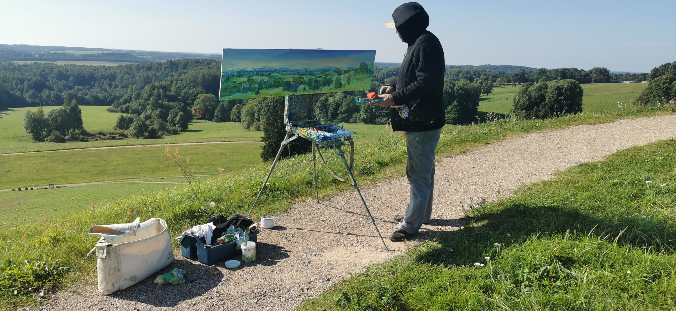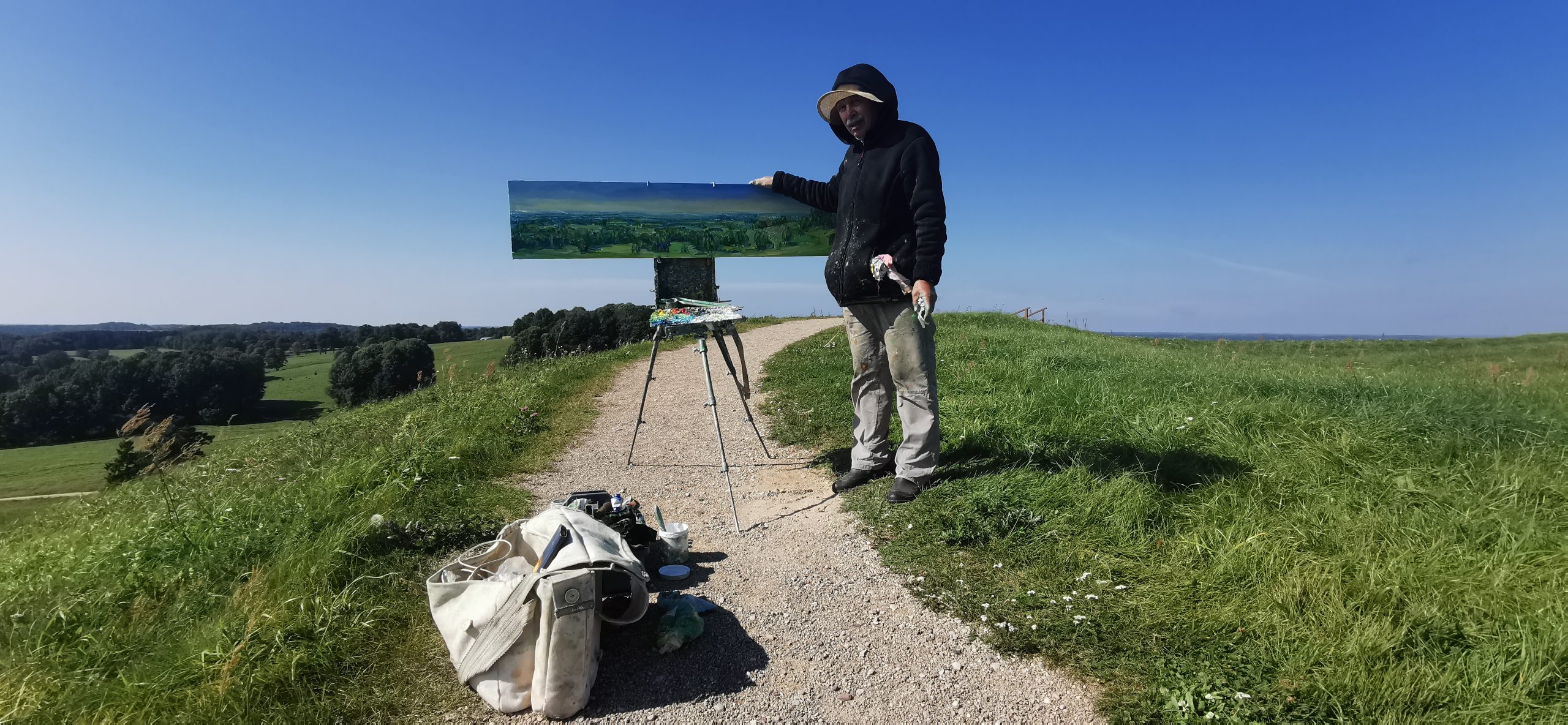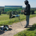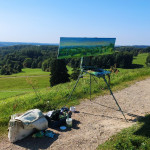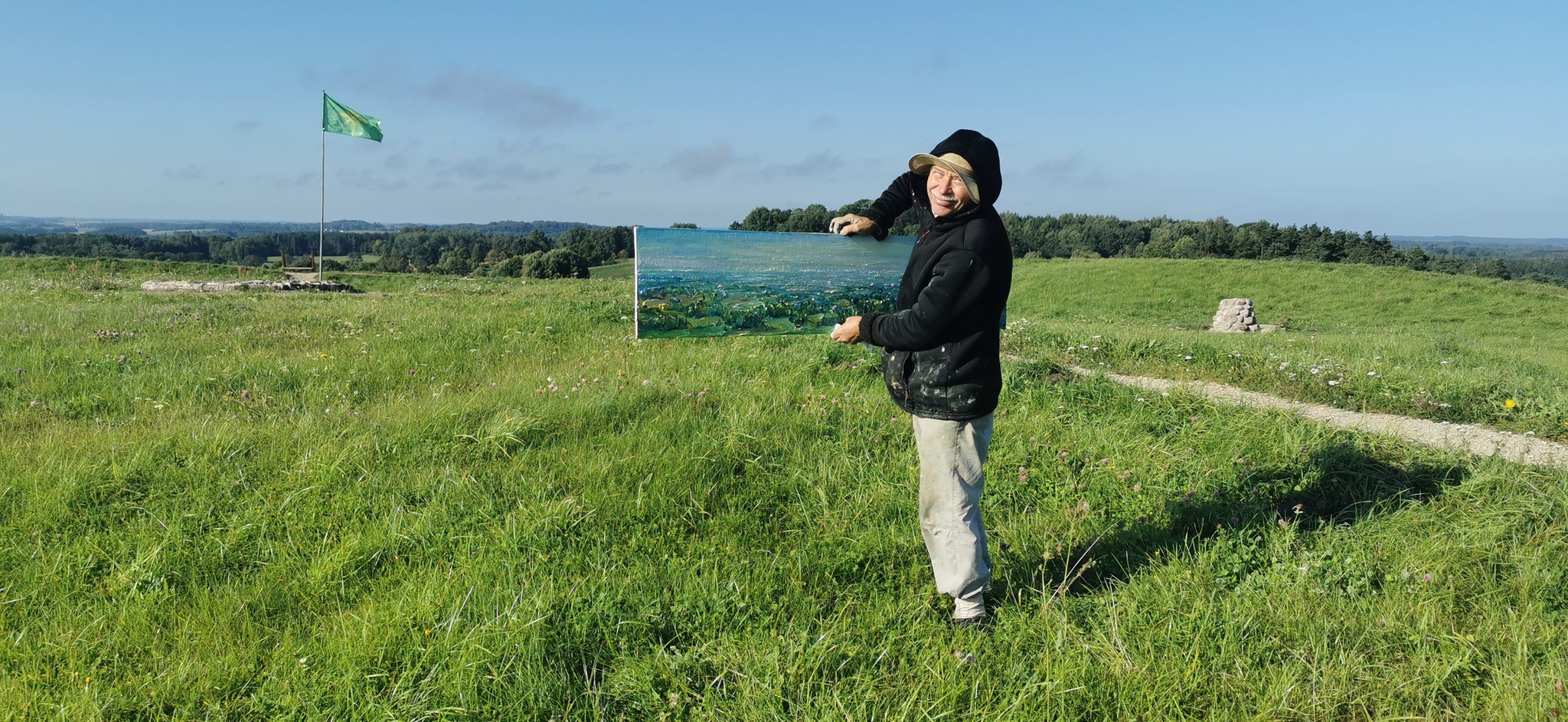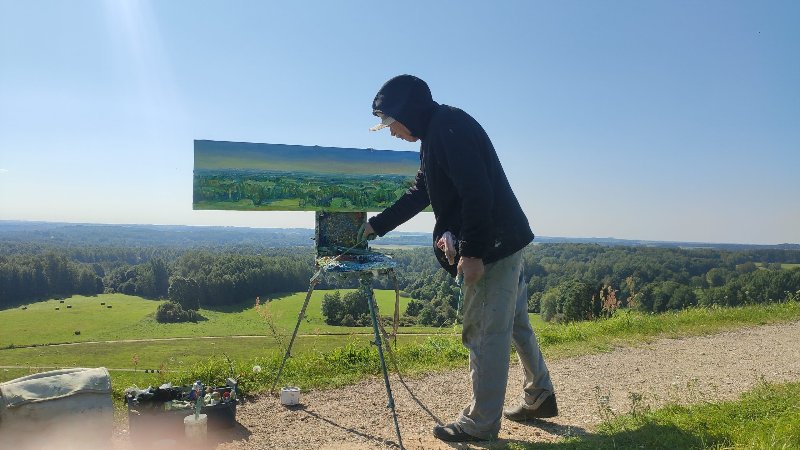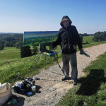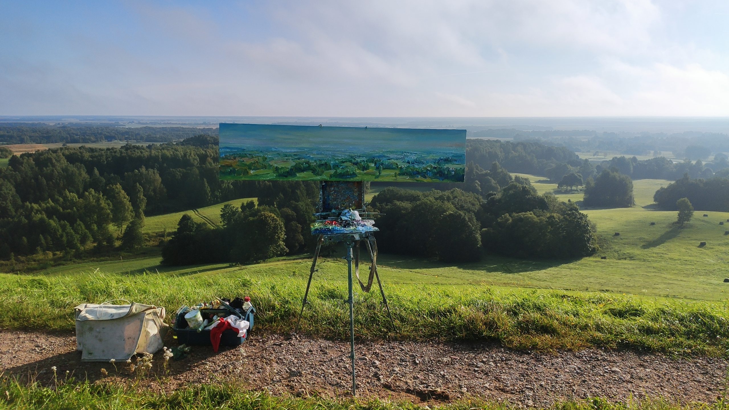 Tapybos pleneras Žemaitijoje ant Šatrijos kalno 2025 09 1-2 Saulei nuostabiai auštant virš Žemaitijos visa žemė apšviečiama sidabriniais Saulės spinduliais. Pabunda gamta ir pasaulis. Tuo metu tapiau Sidabrinės Saukės patėkimo kerintį vaizdą kada žemė atsiskiria nuo dangaus. Nuo kalno viršaus atsiveria nuostabus Žemaičių žemės grožis. Tapiau auštančios dienos ankstyvą rytą ant Šatrijos kalno šaltą ir vėjuotą sidabrinės Saulės užtekėjimą. Nutapiau didelė dviejų dalių gamtovaizdžio panoramą.