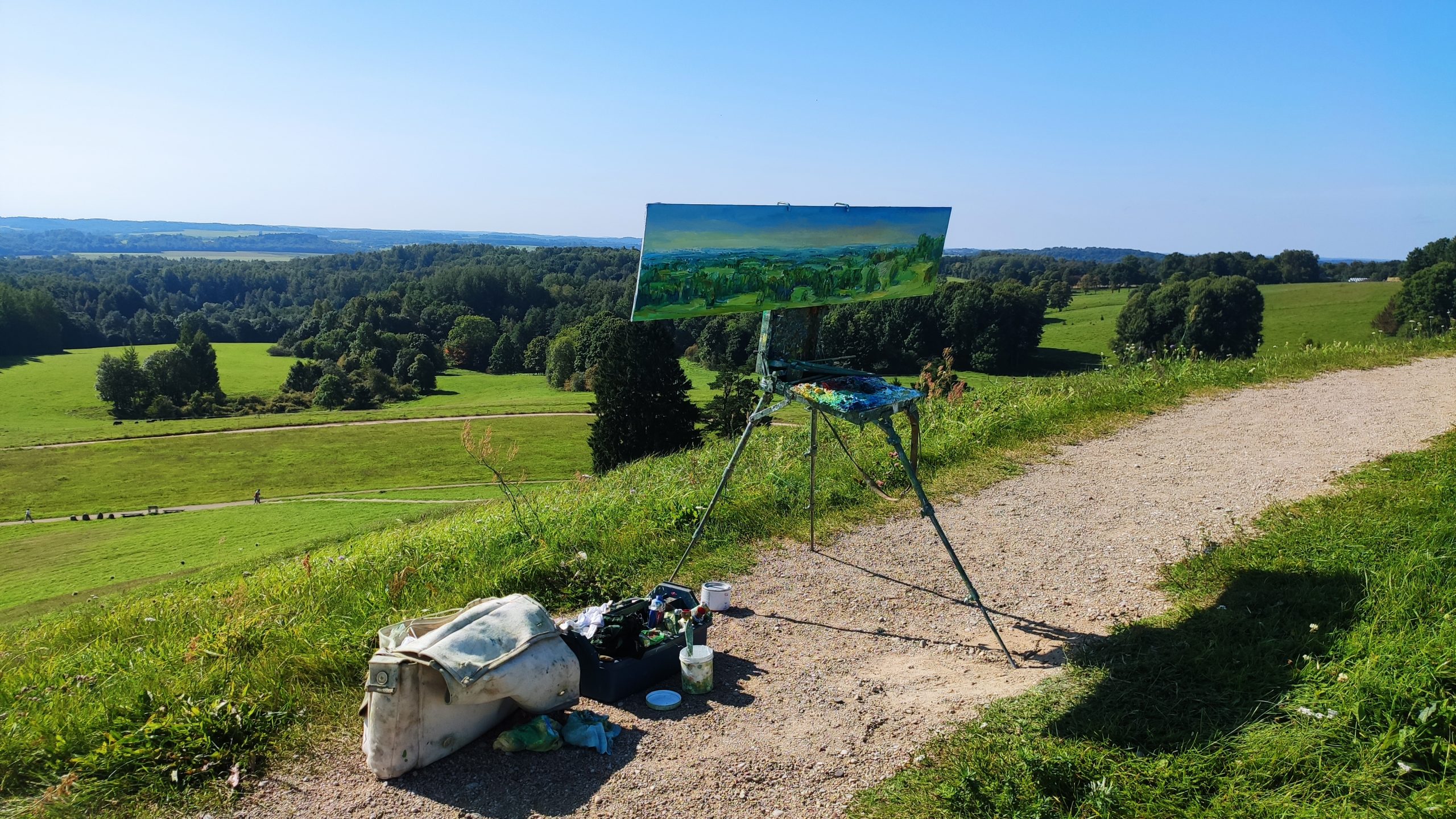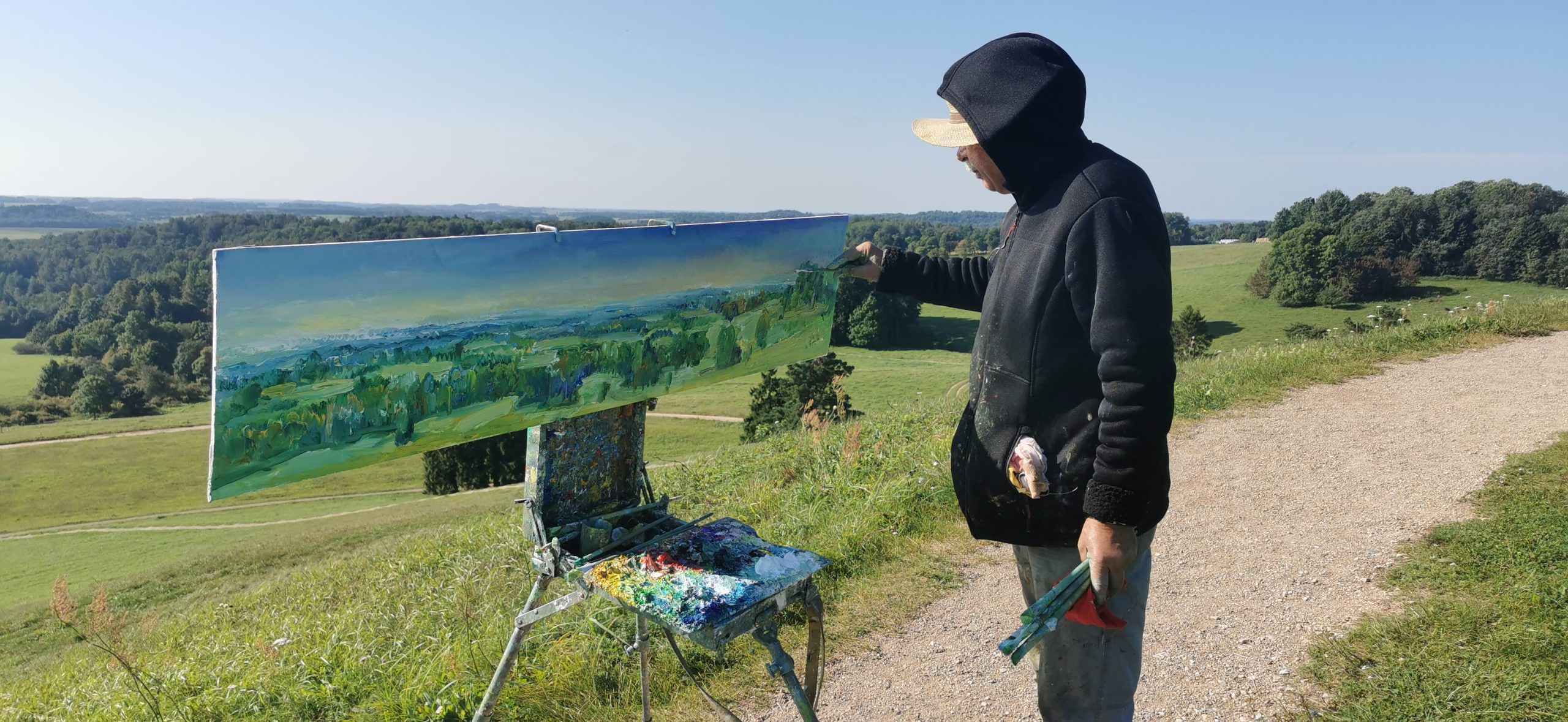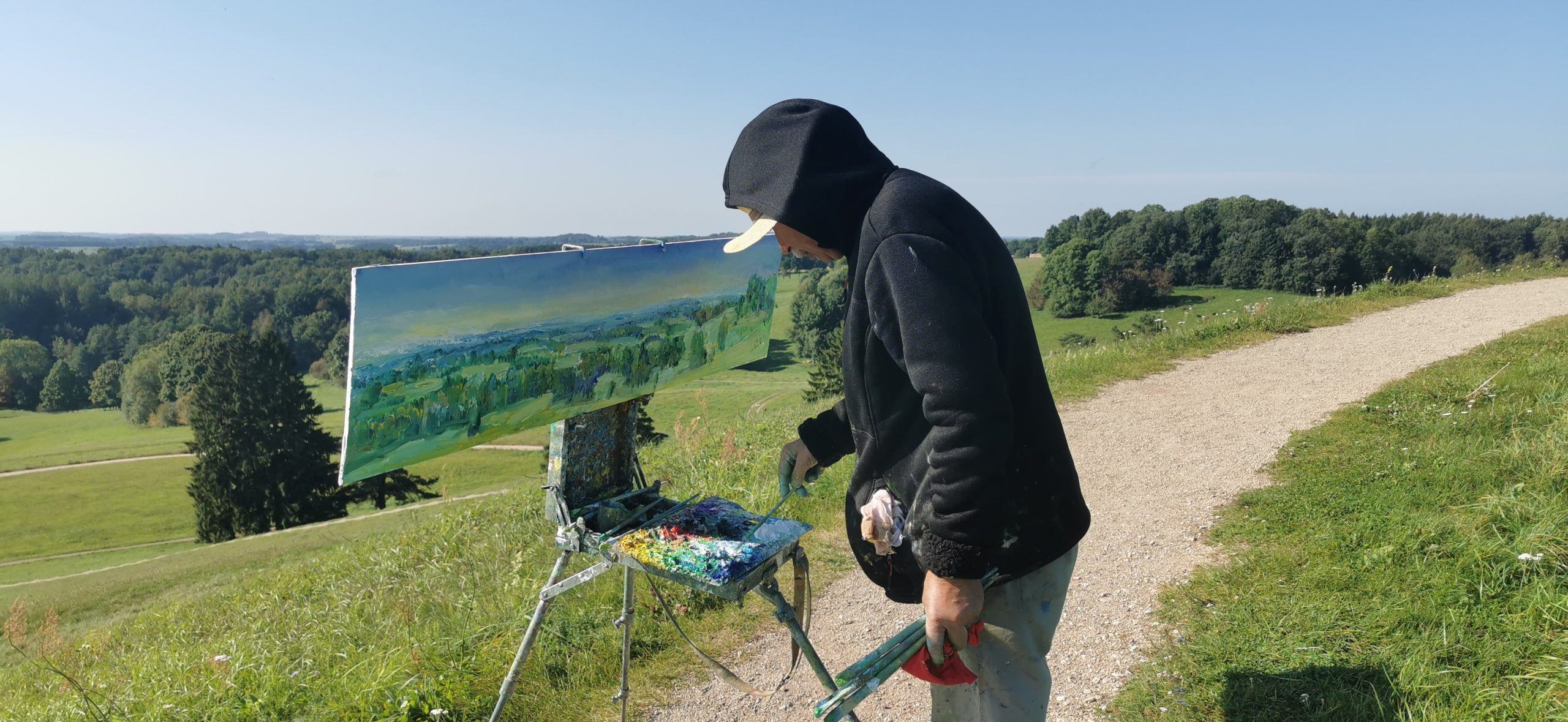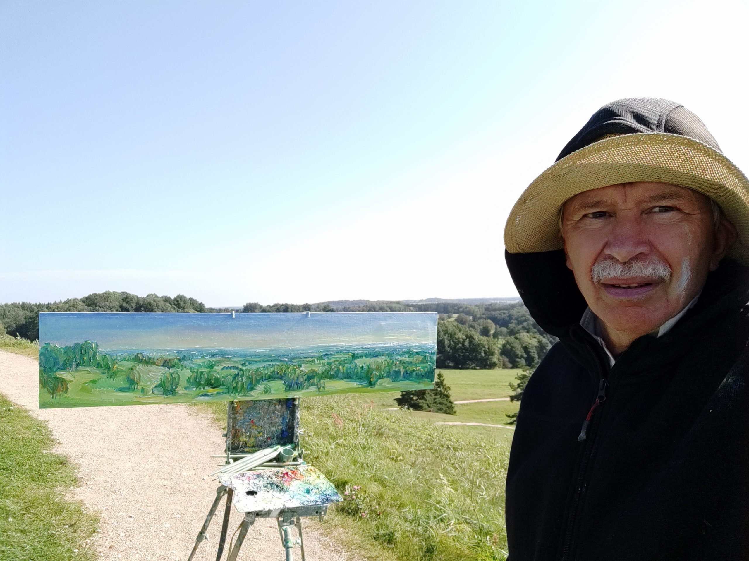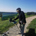 Tapybos pleneras Žemaitijoje ant Šatrijos kalno 2025 09 1-2 Saulei nuostabiai auštant virš Žemaitijos visa žemė apšviečiama sidabriniais Saulės spinduliais. Pabunda gamta ir pasaulis. Tuo metu tapiau Sidabrinės Saukės patėkimo kerintį vaizdą kada žemė atsiskiria nuo dangaus. Nuo kalno viršaus atsiveria nuostabus Žemaičių žemės grožis. Tapiau auštančios dienos ankstyvą rytą ant Šatrijos kalno šaltą ir vėjuotą sidabrinės Saulės užtekėjimą. Nutapiau didelė dviejų dalių gamtovaizdžio panoramą.