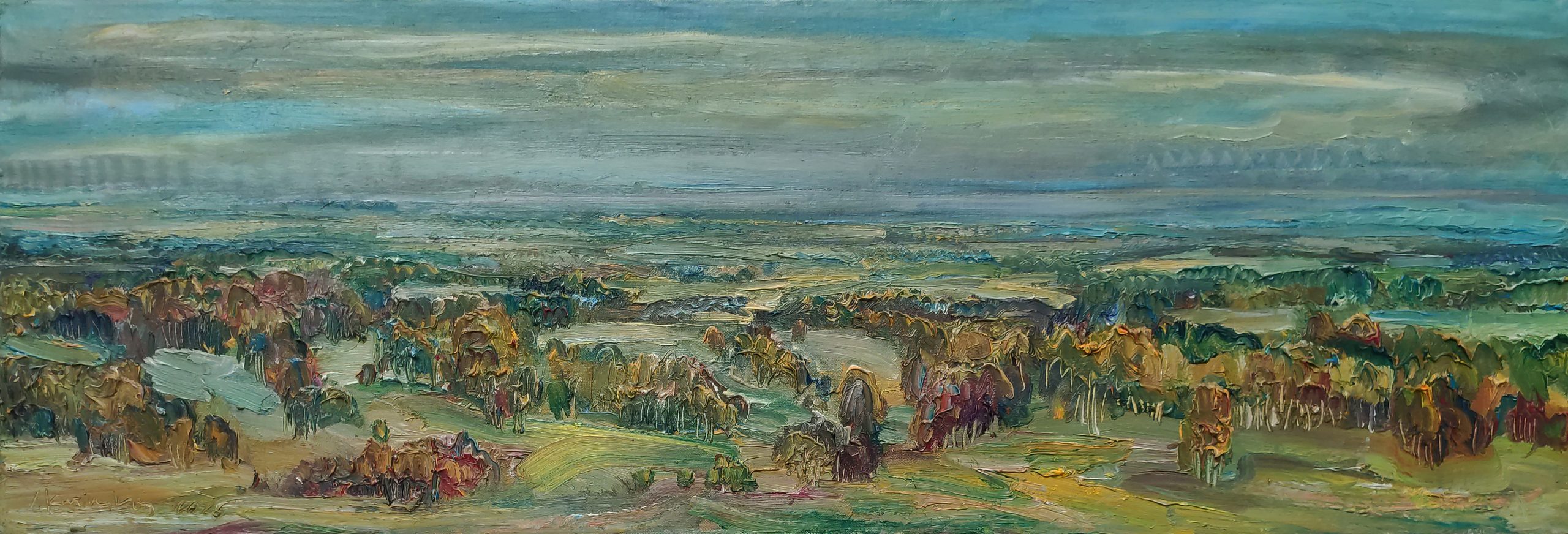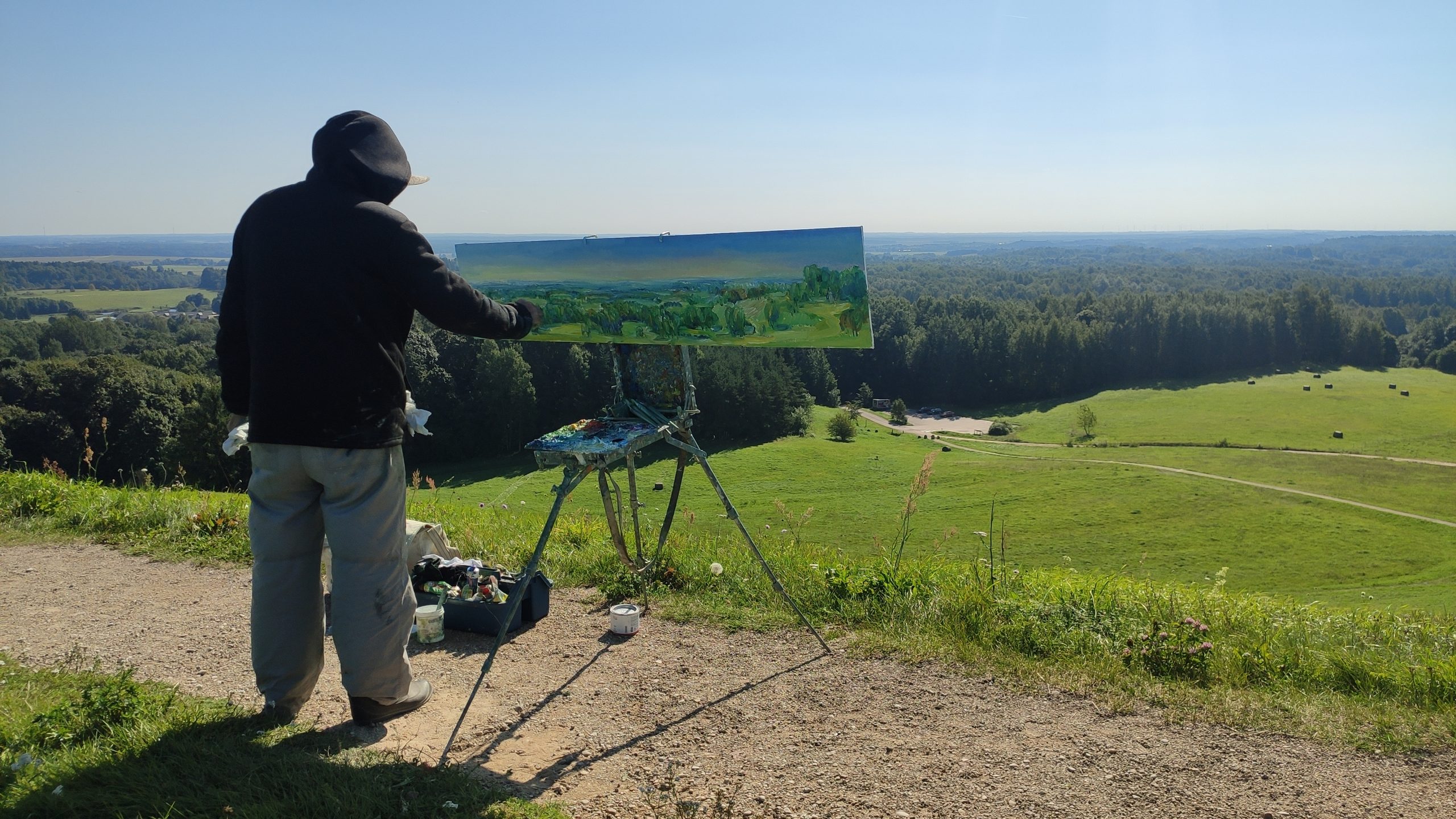 Žemaitijoje nuo Šatrijos kalno atsiveria nuostabus žemaičių žėmės grožis. Tapiau jau rudenėjant vėją šiek tiek apsiniaukusią dieną kada Saulė retkarčiais pasirodydama pro debesis apšvietė rudeniškos šviesos likučiai. Pleneras vyko 2025 10 18