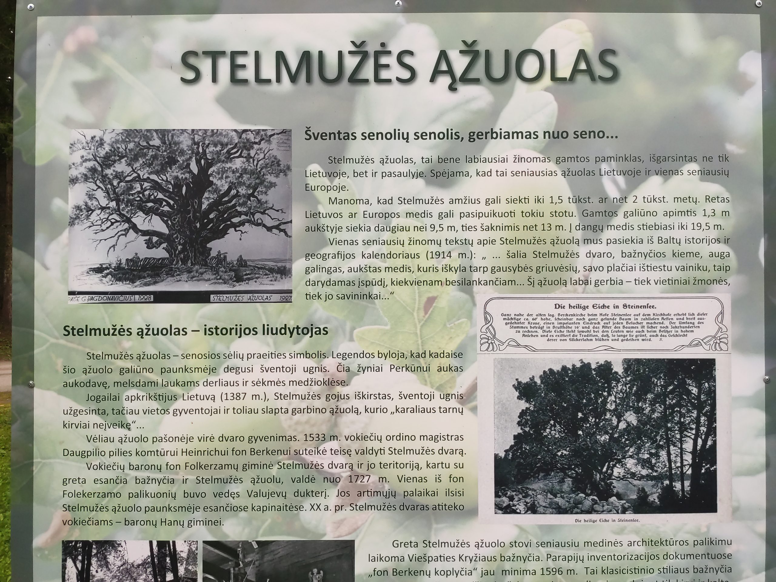 Stelmužės Ąžuolas yra nepaprastas Ąžuolas, tai lietuvių mitologijos ir senosios pasaulėžiūros liudytojas ir paminklas. Jis mums pasakoja 1500 metų Lietuvos istoriją kurią mes galime pamatyti ir perskaityti jo randotame kamiene.